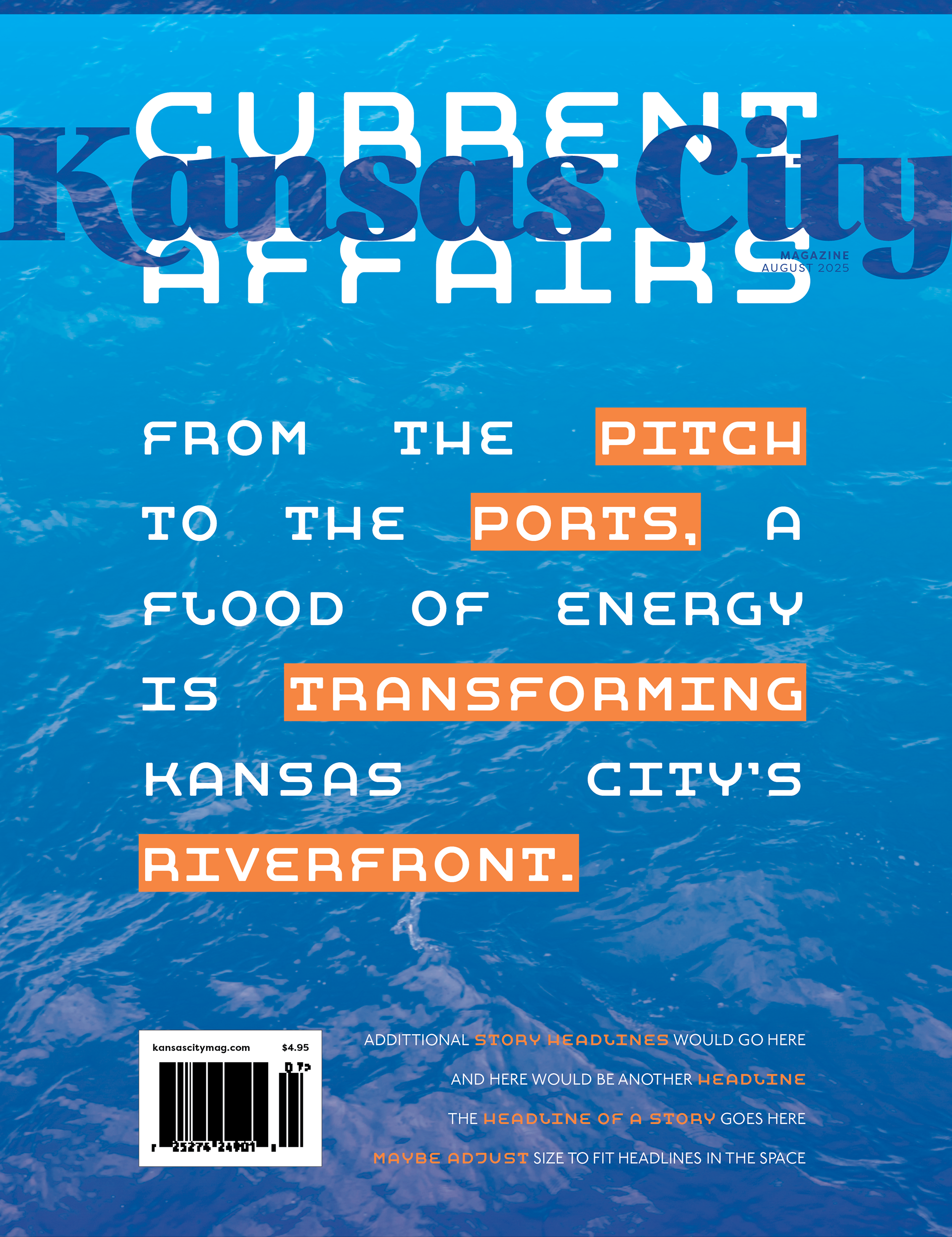 Cover created to explore brand identity for Kansas City Magazine while forming a new cover idea. Created rivers in the text as a nod to the feature story. While non designers wouldn't understand the context, the flow and feel of the text matches how it should be perceived.